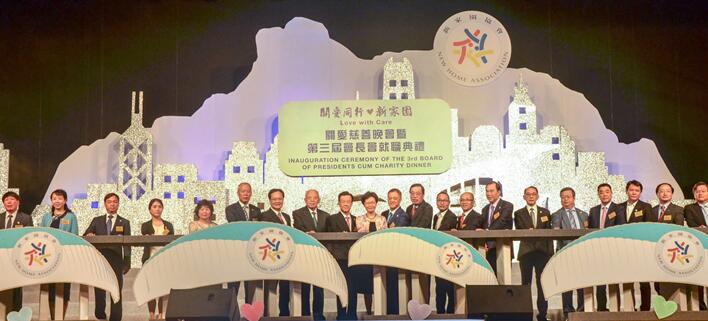 香港行政长官梁振英在酒会上,与新家园协会会长许荣茂、监事会主席李思廉等为慈善晚宴主持启动仪式,并颁发首张“关爱家园卡”,让协会提供衣食住行相关的商品和服务特别优惠,给香港贫穷线以下约100万市民,使基层市民能直接分享国家和香港社会经济发展的成果。林郑月娥于晚宴上致辞时表示,关爱互助是香港社会的优良传统,本届及新一届政府将继续致力于扶贫工作,改善社会民生,为弱势社群的福祉尽心尽力。